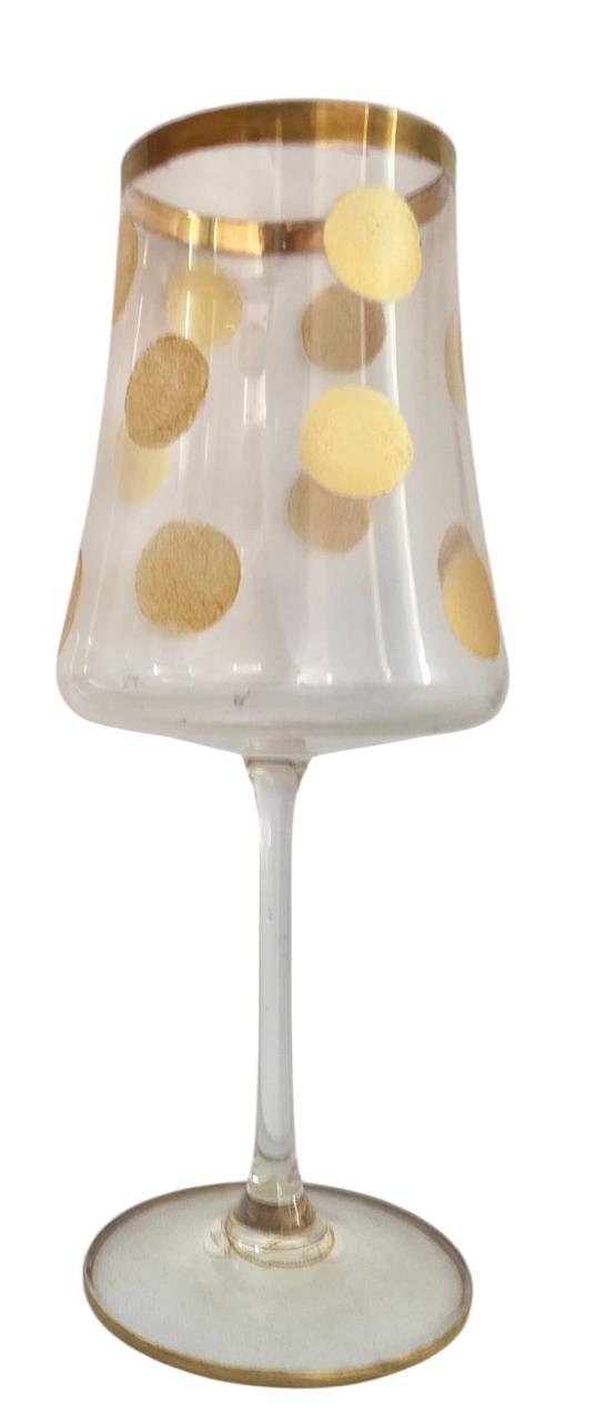 Taças de Cristal com Bolas Douradas e Borda em Ouro com detalhe em Ouro no pé.