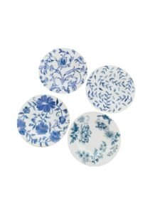 Pratos inspirados na arte contemporânea compincelada de atualidade pintei flores e folhas azuis .