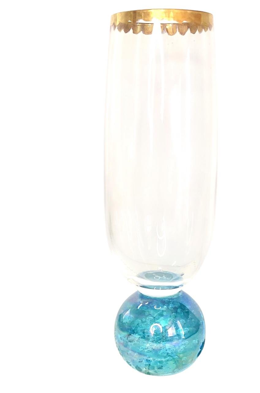 Conjunto de taças para drink ou champanhe com borda em ouro e pé pintado em lustre azul claro.