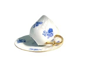 Xicaras de café  em porcelana limoges com flores azuis e ricos detalhes em ouro.