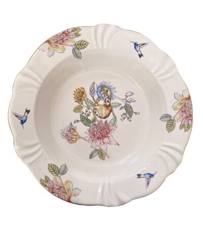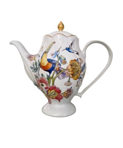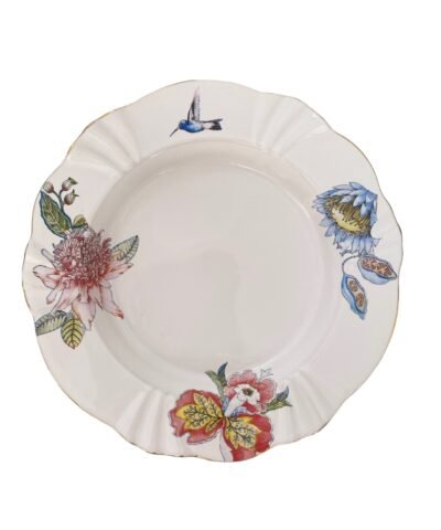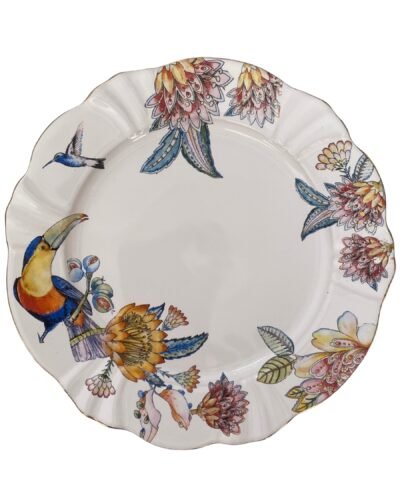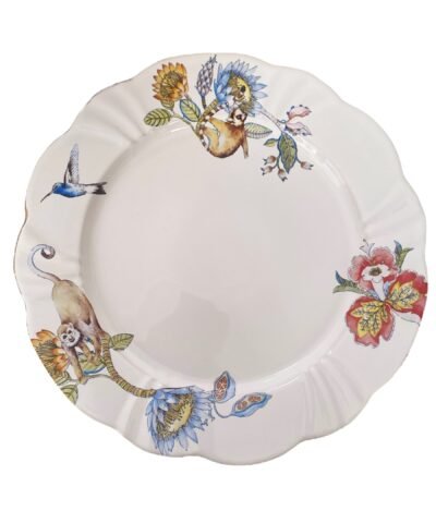 Inspirada em um refúgio exuberante e vibrante que traz a beleza e a serenidade das florestas tropicais para um ambiente acolhedor. Resolvi trazer o frescor da mata, a alegria contagiante dos bichos, transformando esse projeto em porcelana todo filetado a ouro em peças elegantes e descontraídas.